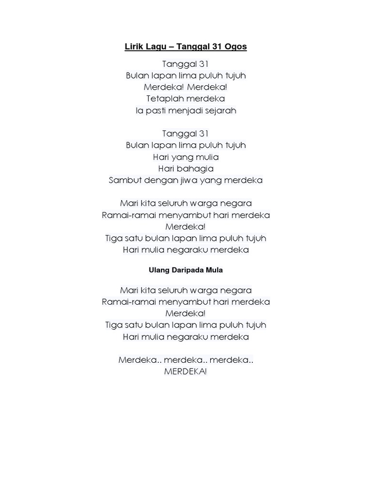 Lirik Lagu Tanggal 31 Ogos Pdf